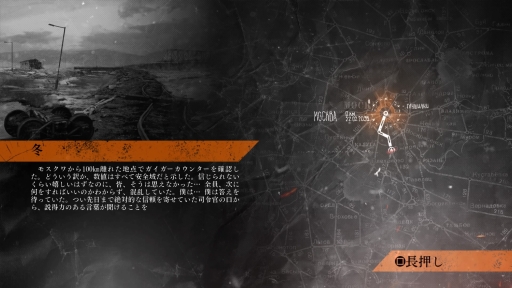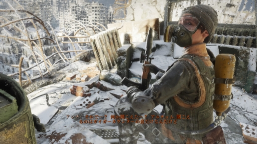 「メトロ」シリーズでは,チャプターが切り替わる際にモノローグが入るものの,基本的にアルチョム自身が話すことはない。主にほかの登場人物の会話で物語が展開するという受動的な進行ではあるが,一方で「人を助ける」「盗みを働く」といったプレイヤー自身が選択した行動が物語に影響を与えるという要素もあり,プレイヤーは物語を読み進めると同時に,アルチョム自身となって行動する楽しさも味わえるのだ。