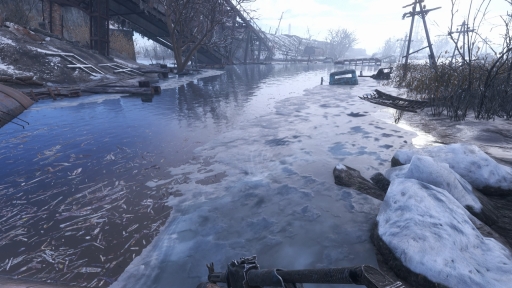 「メトロ」の世界をより現実的に感じさせる要素として忘れてはいけないのが,前作から格段に向上したグラフィックスだろう。雪が積もる市街地はもちろん,砂嵐が舞う砂漠地帯,廃墟マニアにはたまらないであろう朽ちた建築物や工場跡など,季節や天候,地域によって変化する風景描写は格別だ。とくに北国の生まれの筆者には,強風吹きすさぶ冬のモスクワの街や水面に大小の氷が浮かぶヴォルガ川の寒さが,まるで実際にその地にいるかのように伝わってきた。