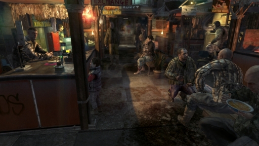 文明崩壊後のモスクワでは,メトロの各駅で小さな都市国家が形成されており,地域ごとに異なる背景や街の成り立ちがある。そういった街の特色や,この時代を生きる人達の考え方と生き方などが徹底したこだわりを持って作られていることが,賑わいを見せる市場や退廃的なショーが行われているステージといった街の風景,何気なく聞こえてくる街の人の会話などで視覚的にも聴覚的にも伝わってくるのだ。