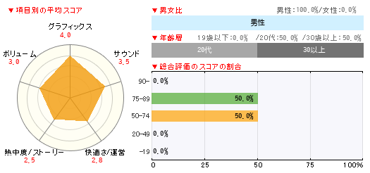 グラフィックス サウンド 快適さ/運営 熱中度/ストーリー ボリューム 2 3 3 1 3 -