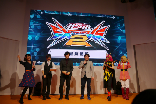 EXVS2はアニメ「機動戦士ガンダム」シリーズのモビルスーツを操って,2対2のチーム対戦が楽しめるアクションゲームだ。今回のイベントでは1月31日に実装されるアップデートの内容や,今春実施予定のSDガンダム30周年記念キャンペーンに関する情報が公開された。