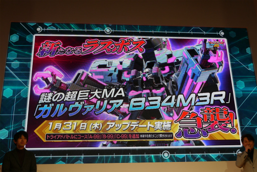 「トライアドバトル」には新コースと新ボスが実装される。トライアドバトルのコースを2つクリアすると,新コース「A-99」「B-99」「C-99」が開放となり,巨大モビルアーマー「ガルヴァリア B34M3R」 が出現するという。