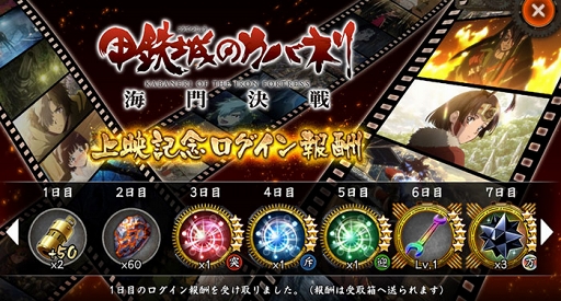 2. 劇場中編アニメーション「甲鉄城のカバネリ 海門決戦」上映記念ログイン報酬!