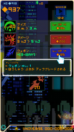 STGの爽快感とクリッカーゲームのリプレイ性を融合させた本作。レトロなグラフィックやサウンドのほか,幕間で挿入される個性的なテキストにもつい目を奪われる。時間をかければ誰でも進められるゲームバランスとなっているので,興味がある人は試しにダウンロードしてほしい。