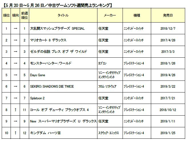 ゲオ,5月3週目の中古ゲームソフト週間売上ランキングを公開