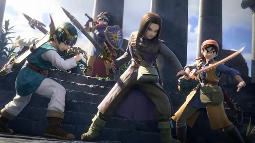 なお,映像では「III」「IV」「VIII」「XI」の主人公たちの姿がプレイアブルキャラとして確認できたほか,「ドラクエ」シリーズでもおなじみのコマンドウィンドウを駆使して戦う姿も見られた。さらに,最後の切り札はシリーズの主人公たちが総出演する豪華なものとなっていた。