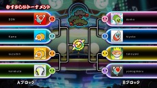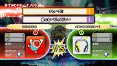 トーナメントは「かんたん」「ふつう」「むずかしい」「おに」の4種類!自分の好きな難易度のトーナメントに参加しよう!1回戦はパッケージ収録曲からランダムで曲が決まり、2回戦以降はお互いが事前に選んだマイバトル曲をそれぞれ演奏し2曲の合計点で勝敗が決まる!
