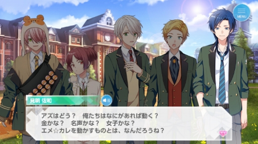 その点「オンエア!」は女性向けゲームである以上,もちろんプレイヤーの心を踊らせてくれるようなときめきを与えてくれるイケメンが出てくる。しかも彼らは声優,表舞台で活躍するスターだ。とすると,一見,共感からは遠い存在のように見えるだろう。