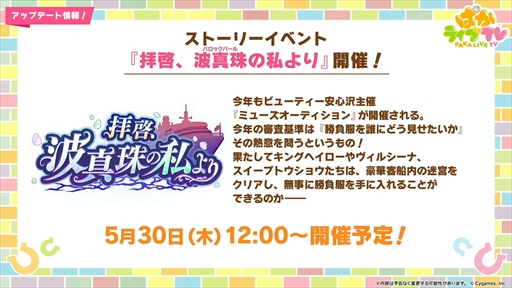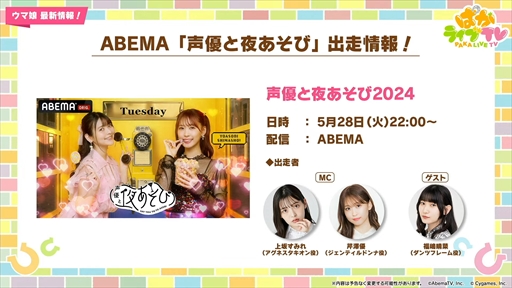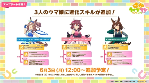 番組は前後半のパートに分かれており,本記事では番組後半で紹介された最新アップデート情報コーナーをまとめていく。番組前半はウマ娘の声優陣が活躍するイベントコーナーとなっているので,そちらも合わせてチェックしてほしい。