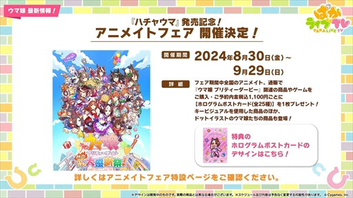 番組では,新たに登場するウエディング衣装のキングヘイローとスイープトウショウや,各種イベントの開催情報など,さまざまな最新情報が公開された。本記事では,その内容をまとめてお届けしていく。