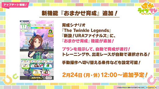 新育成シナリオ「The Twinkle Legends」がリリース! 革命的な新機能「おまかせ育成」も登場