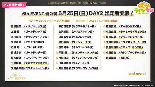 ライブイベント「6th EVENT 春公演」の詳細も発表され,各日の出走者情報が明らかになっています。