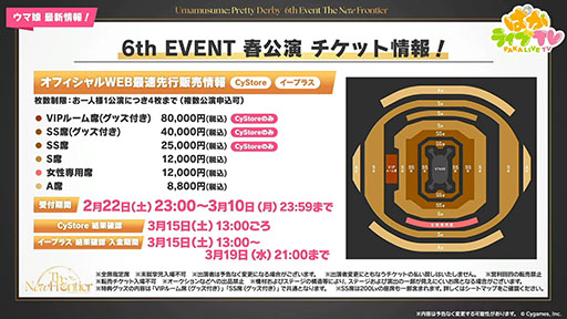 ライブイベント「6th EVENT 春公演」の出走者など詳細が発表。チケット販売も始まり,VIP席は8万円!?