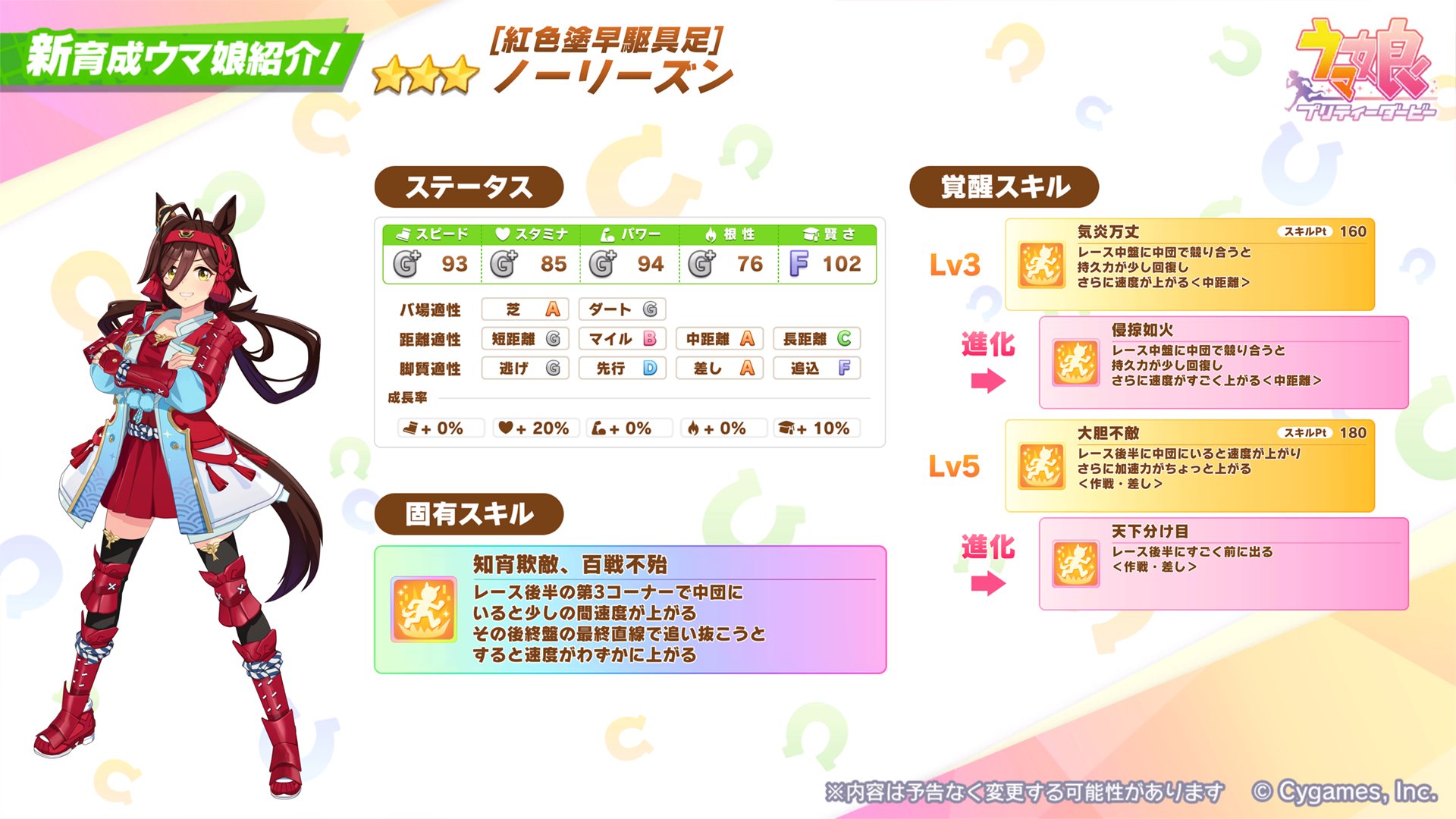 「ウマ娘」,★3ノーリーズン(CV:河野ひより)を新育成ウマ娘として実装。SSR確定10連付きのセレクトピックアップガチャも開催