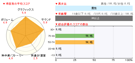 グラフィックス サウンド 快適さ/運営 熱中度/ストーリー ボリューム 5 5 1 4 4 -