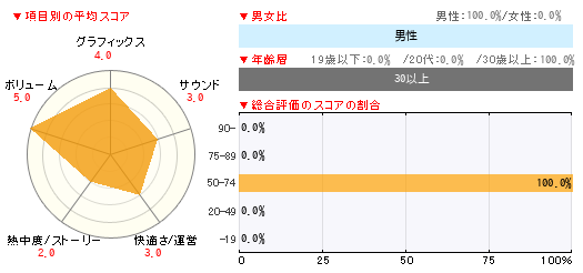 グラフィックス サウンド 快適さ/運営 熱中度/ストーリー ボリューム 4 3 3 2 5