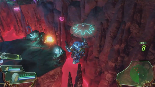 アナスタシアが搭乗する機体の武器は銃と番傘風のライフルで,遠距離攻撃はもちろん,近接距離では傘で薙ぎ払うといった攻撃ができるなど,遠近どちらでも使い勝手のいいキャラクターになっているようだ。公開された動画では,傘を使って空中をゆっくり降りてくるシーンも。