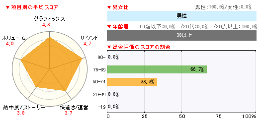 グラフィックス サウンド 快適さ/運営 熱中度/ストーリー ボリューム 5 4 5 3 4 -