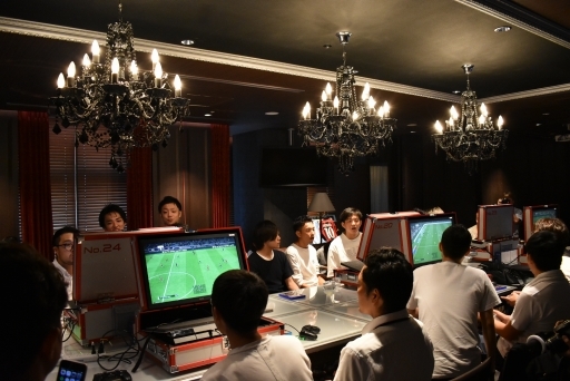 | メディア対抗戦には,浅井企画ゲーム部など4つのeスポーツチームも参戦。また,ウイイレトッププレイヤーも,解説や助っ人役として参加した |
