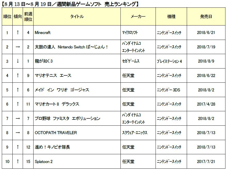 ゲオ,8月2週目の新品ゲームソフト週間売上ランキングを公開