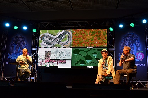 PixelJunkシリーズ10周年を記念したステージ。キュー・ゲームス代表取締役のディラン・カスバート氏 (右)は,PS3が登場し,HDMI接続によって画質がより美しくなったことで,2Dゲームが復活するのではと嬉しく思ったそうだ。そしてこのことが,PixelJunkシリーズを立ち上げるきっかけになったと語った