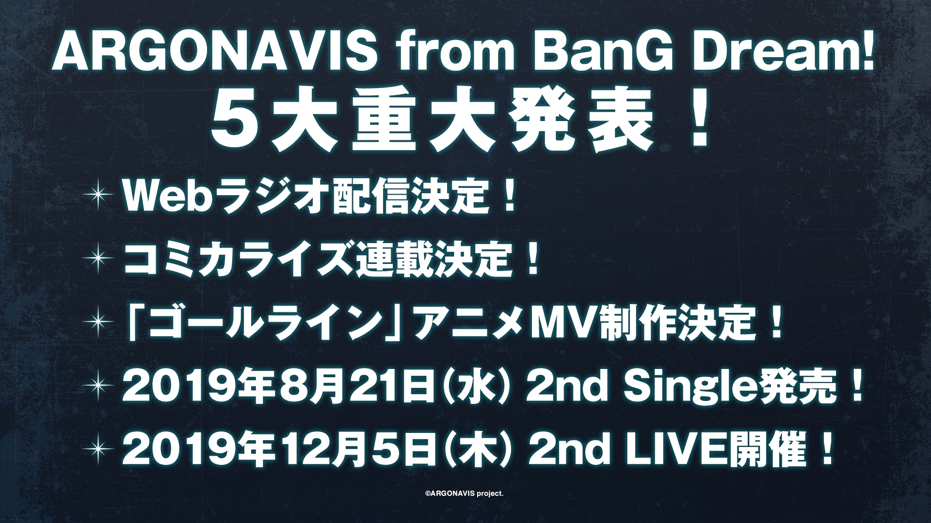「BanG Dream! Argonavis 1st LIVE」で発表された内容を公開。ラジオ配信やアニメMV制作が決定