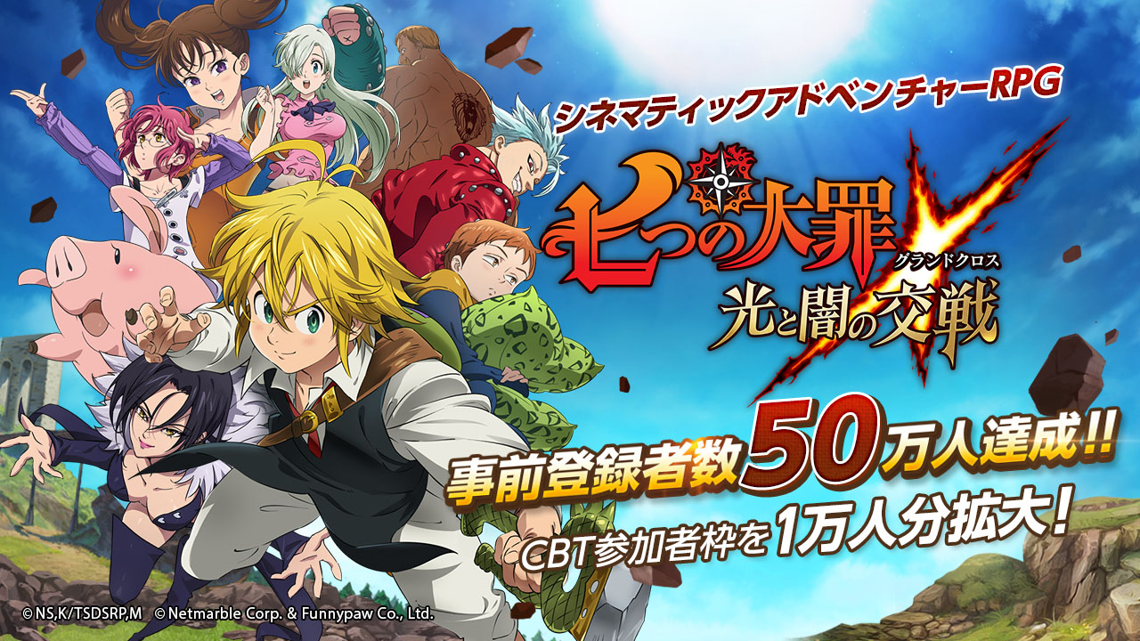 「七つの大罪 〜光と闇の交戦〜」の事前登録者数が50万人を突破。クローズドβテストの参加者枠を1万人分拡大したことも発表