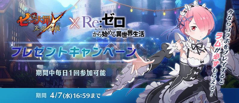 「七つの大罪 光と闇の交戦」とTVアニメ“リゼロ”のコラボイベントがスタート