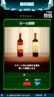 画面に表示されるボトルやグラスなど,壊れるターゲットをどんどん壊してクリア時間を競うモード。すべて壊すと次の画面が表示される。ターゲットには複数が積まれた状態のものもあって,撃ち方次第では一気に両方壊せるといった戦略性もある。ターゲットが壊れるエフェクトや音が激しいので,ギャラリーウケするモードかもしれない。推奨BB弾数は約100発だ。