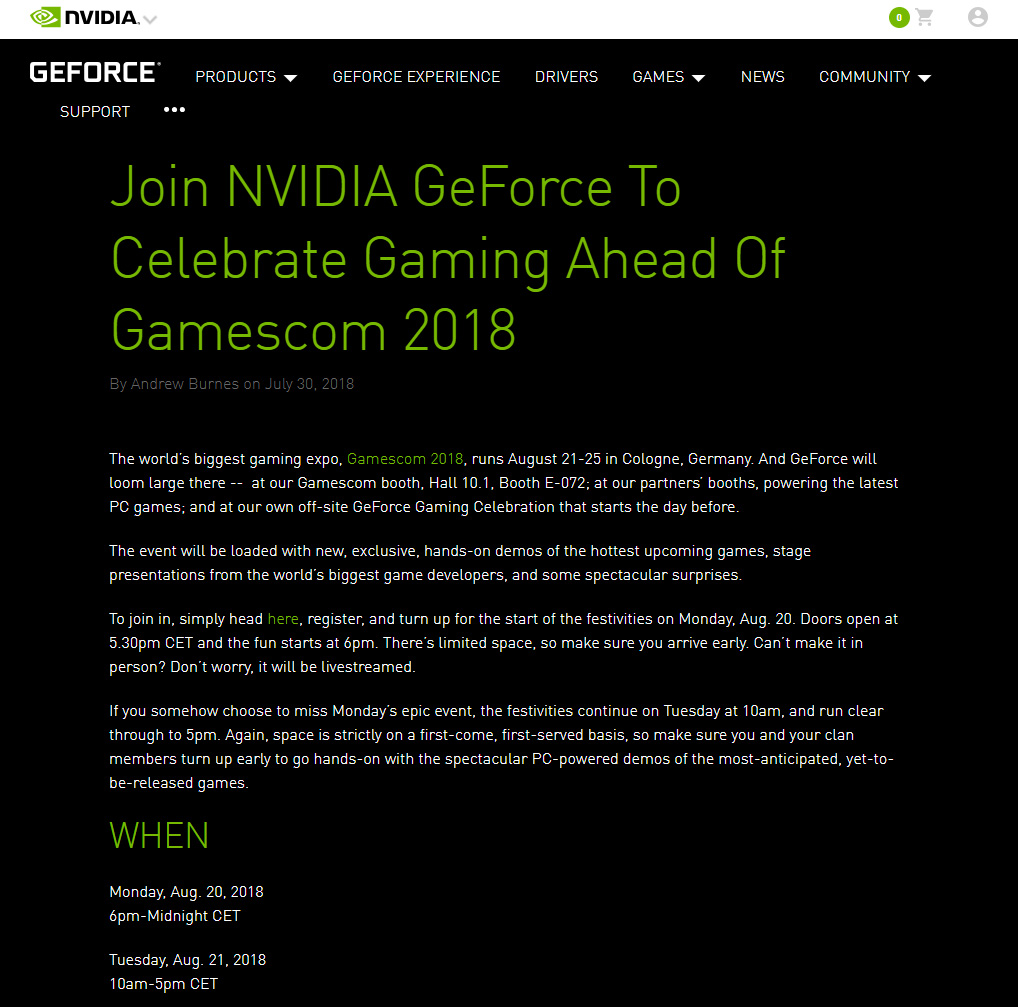 NVIDIAが8月20日にGeForceの祝賀イベント。「驚異的なサプライズ」を予告
