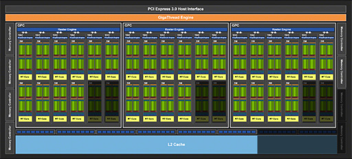 RTX 2070の採用するTU106コアでは,Turing世代の演算ユニット「Streaming Multiprocessor」(以下,SM)を12基集め,CPUで言うところの「CPUコア」に相当する“ミニGPU”モジュールとしての「Graphics Processor Cluster」(以下,GPC)を構成し,さらにそのGPCを3基束ねた設計になっていた。