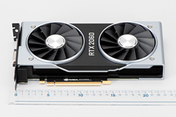 まず外観だが,銀と黒を基調にしたデザインはRTX 2070のFounders Editionとほぼ同じ。カード長は実測約230mm(※突起部除く)で,これもRTX 2070 Founders Editionとまったく同じだ。GTX 1060 6GBのFounders Editionだとカード長は実測約249mmなので,そこから20mm近く短くなっている。