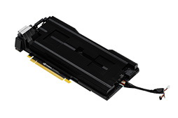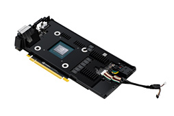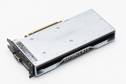 しかも,箱のような形の金属製カバーが全体を覆っているため分かりにくいのだが,実のところ基板長は実測約190mmしかない。GPUクーラー,そして8ピンのPCI Express補助電源コネクタがカード後方へ約40mmほどはみ出た格好だ。