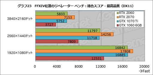 グラフ23は「ファイナルファンタジーXIV: 紅蓮のリベレーター ベンチマーク」(以下,FFXIV紅蓮のリベレーター ベンチ)の総合スコアをまとめたものである。