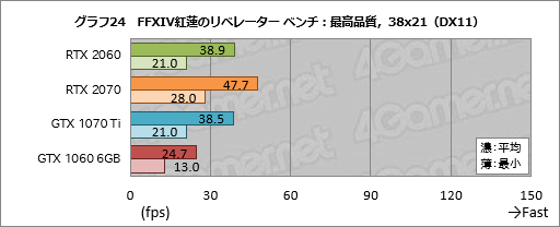 そんなFFXIV紅蓮のリベレーター ベンチにおける平均フレームレートと最小フレームレートをまとめたものがグラフ24〜26となる。