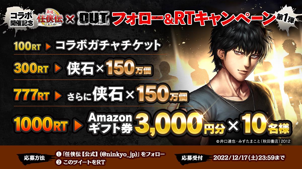 「任侠伝」×漫画「OUT」コラボ開催記念Twitterキャンペーンがスタート