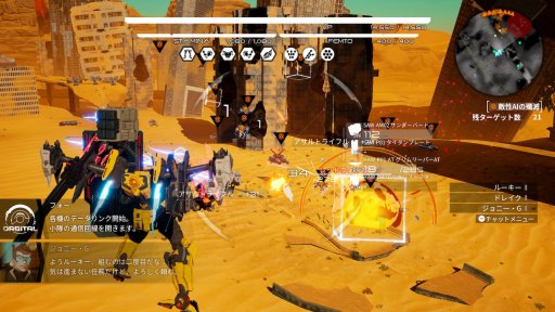 加えて,アーセナルの装備に「ロックオンした敵を中心に動くようになる」という効果が用意されたのも,とくに右スティックでのカメラ操作が苦手な人にとっては朗報といえるのではないだろうか。期間限定体験版にもあった「ロックオンした敵に自動で発砲してくれる」銃器と合わせれば,機体の制御に集中できるようになるため,操作の負担が大きく軽減される。