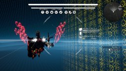 まずは,筆者が期間限定体験版のインプレッションでも指摘した「敵の視認性」についてだ。背景に埋もれがちだった小型の敵にマーカーが付いたことで,一目で存在を認識できるようになっていた。さらにボスや敵アーセナルには体力ゲージがつき,攻撃の効果が一目で分かるようになった。