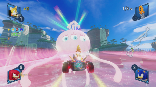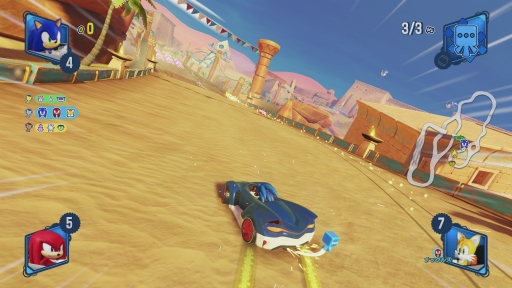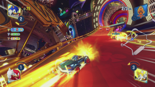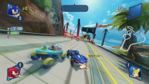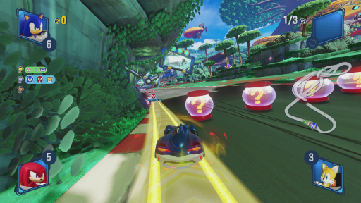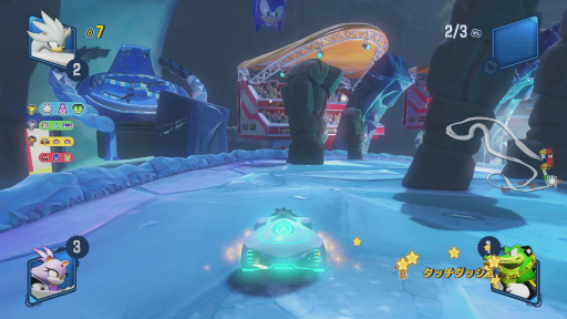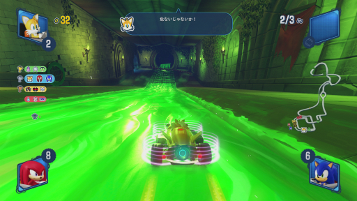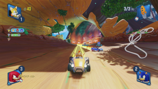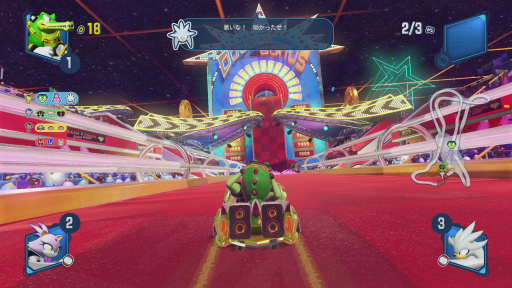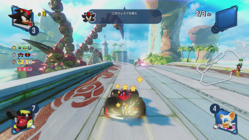 ソニックたちがマシンに乗りレースを繰り広げる本作は,レースゲームでは珍しい「同じコース上を走っている仲間キャラクターと連携を取りながら,チームで1位を目指す」というルールを導入している。本稿では,従来のレースゲームとはひと味違う