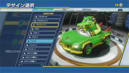 マシンのカラーリング変更は,走りには直接影響のない純粋に見た目だけのカスタマイズとなる。マシン全体で4か所を色分けでき,各色は12種の素材や塗装の質感で表現することが可能だ。さらにアンロックしたキャラクター全員のカラーパターンが選べるので,搭乗するキャラクターのイメージカラーとはまったく別の色のマシンにすることもできるだろう。チューニングパーツのカラーなどとともに自分だけのマシンにコーディネートして,オンラインレースを走りたいところだ。