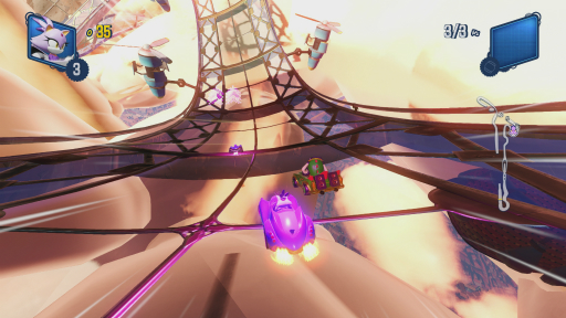 開発は「ソニック&オールスターレーシング TRANSFORMED」の開発を手がけたSumo Digitalで,レースゲームとしてのプレイフィールはそれに近い。ギミックに富んだコースや,カーブを曲がるときにブレーキ/ドリフトボタンを押すと発生するドリフトからのブーストによる爽快な走行など,レースゲームとしての基本部分も高い完成度を誇っている。ソニック単独のタイトルとなったことで,ファンならワクワクするようなコースの外観や世界観が構築されているのも嬉しいところだ。