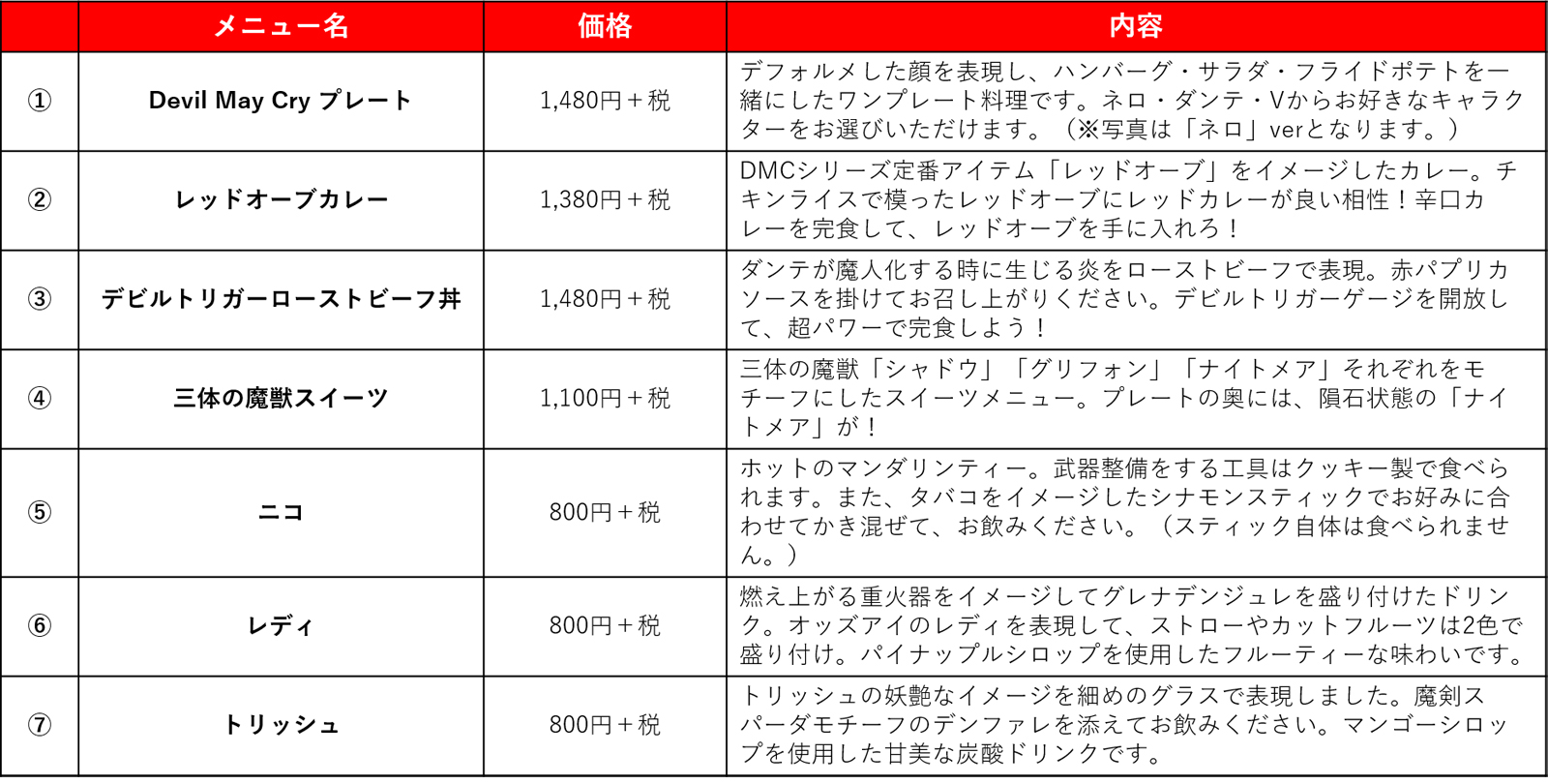 3月7日からカプコンカフェで開催される「DMC5」のコラボメニューが公開に