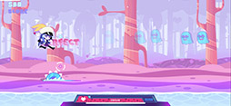 Muse Dashは直訳すれば「女神,走る」といったところで,これはヒロインが2D横スクロールステージを走りながら敵を倒していくところに由来しているものと思われる。今回のプレイで確認できたヒロインは3人で,こんな感じの子たちである。