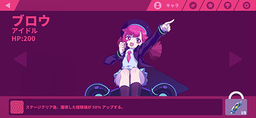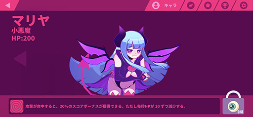キャラクターごとにそれぞれ衣装が複数あり,衣装によって能力も異なる。単純にプレイヤーを助けてくれるものもあるが,ハイスコアを狙うためにわざとゲームプレイに制限をかけるものもある。素直に好きなキャラクターや衣装を選んでもいいが,能力の影響はそれなりに大きいので,選ぶときには説明文を一読するのがオススメ。