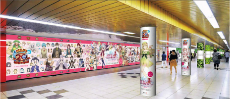 本広告では、新宿の東西をつなぐ地下通路「東京メトロ丸ノ内線新宿駅メトロプロムナード」にある壁面1面および、壁面に隣接する柱6本に広告を展開します。シリーズ20周年を飾る作品としてふさわしく、本作に登場する「アトリエ」シリーズのキャラクターたちが勢ぞろいしたデザインで大型広告を盛り上げます。