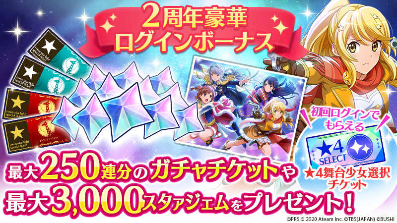 「スタリラ」2周年記念キャンペーンが開催。最大410連分のガチャが無料に