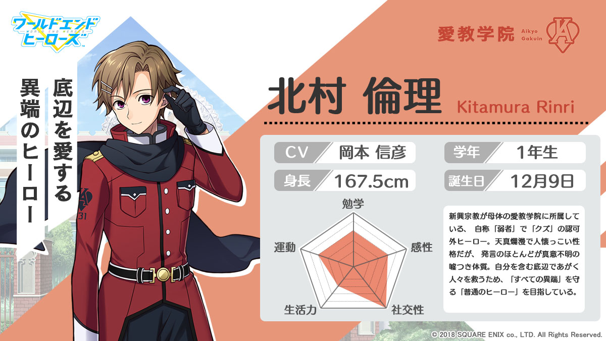 「ワールドエンドヒーローズ」,岡本信彦さん演じるキャラ「北村倫理」の情報が公開に。ゲーム内に登場する全ヒーローをあらためて掲載
