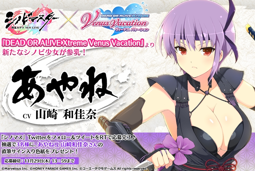 「シノビマスター 閃乱カグラ」,「DOA XVV」とのコラボが本日スタート