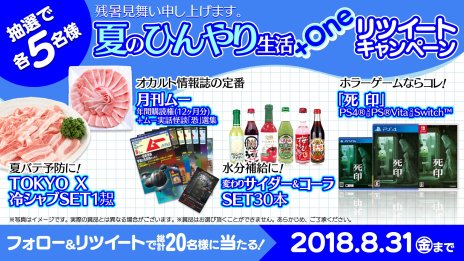 また「Tokyo Xの冷しゃぶSET」や「変わりサイダー&コーラSET」などが当たる同作のTwitterキャンペーン「夏のひんやり生活+One フォロー&リツイートキャンペーン」も本日開始となっている。こちらの詳細は下の囲みを確認してほしい。
