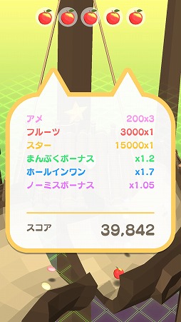 一打ごとに動物は体力を消費し,これがゼロになるとゲームオーバーとなる。コース上には体力回復アイテムのフルーツも落ちているので,必要に応じて獲得するとよい。